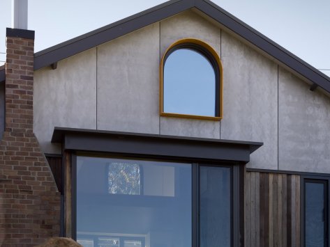 As written in "Architecture & Design", rebuilding the existing house with its new attached entry pavilion and the studio sit comfortably in the streetscape of the historic village of Blackheath, mediating the scale of the neighbours and speaking to the rural and straightforward materiality of the area. They also frame the space between the buildings forming a protective courtyard and significant views to the distant Kanimbla Valley and escarpment beyond. This sharing and framing of view play a significant part in informing the composition and organisation of design and space between the buildings.
