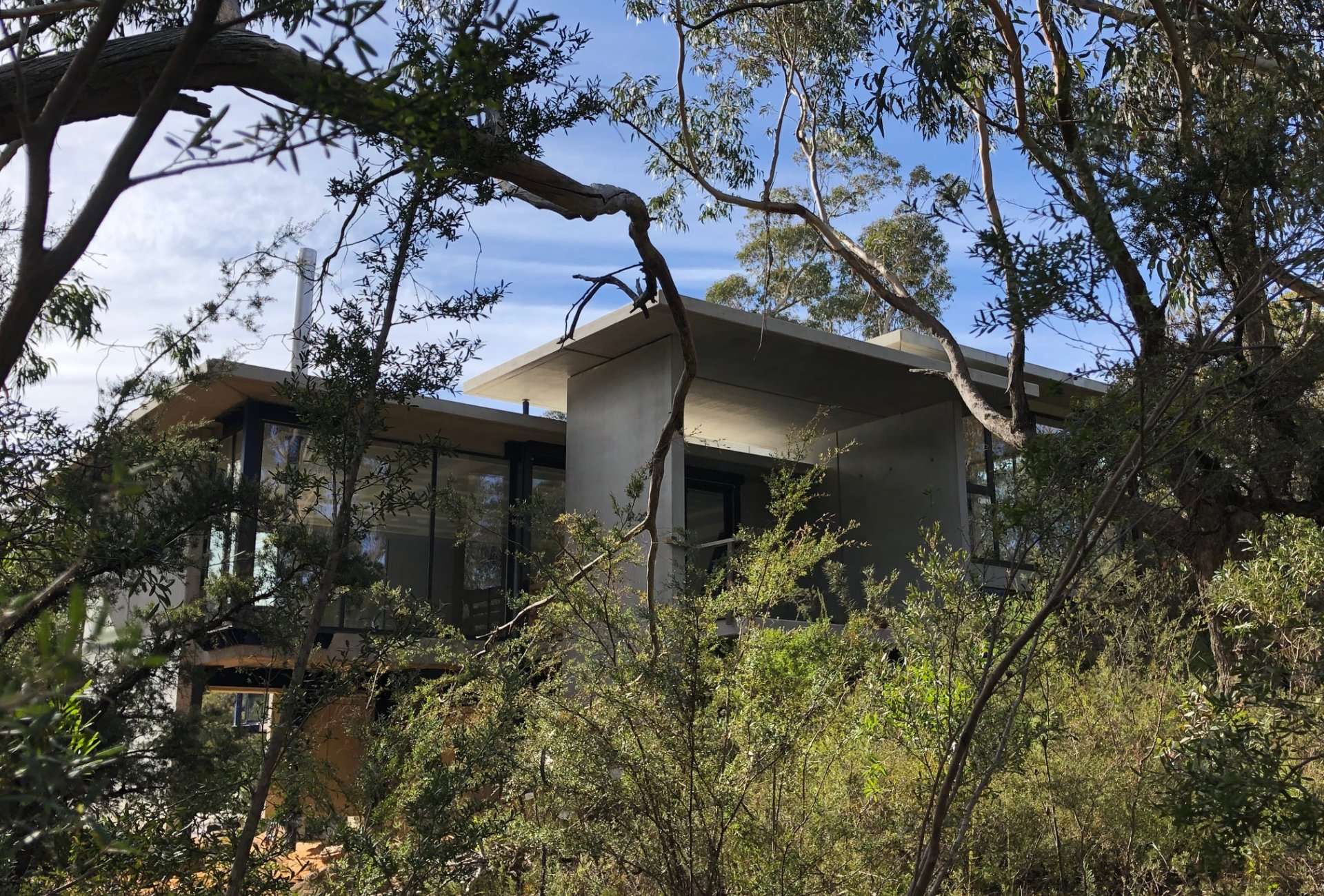 This unique precast concrete cantilevered home is the result of the combined imaginations of Nicole Bartels (former General Manager of Hanson Precast) and Tom Simmat. Located in Leura, in the Blue Mountains of NSW, the house has 1200mm cantilevered eaves and edge beams, infilled polish concrete, and 'hydronically' heated slabs. Steel and concrete piers were placed with exact precision, allowing the construction of the floor and walls to float atop the sloping site.